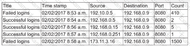 Users from the marketing department (192.168.0.1/24) are reporting performance issues with an on-premises application server (192.168.0.9). The application server should only be accessed internally. A security analyst reviews various logs and finds the following information: