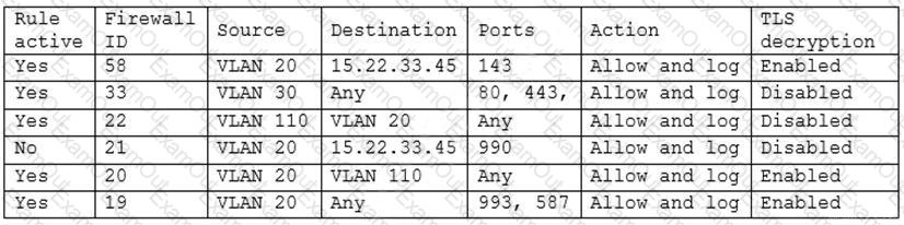 A security engineer has been asked to close all non-secure connections from the corporate network. The engineer is attempting to understand why the corporate UTM will not allow users to download email via IMAPS. The engineer formulates a theory and begins testing by creating the firewall ID 58, and users are able to download emails correctly by using IMAP instead. The network comprises three VLANs: