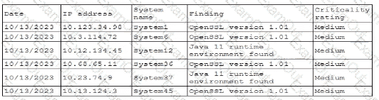 A security professional is investigating a trend in vulnerability findings for newly deployed cloud systems Given the following output: