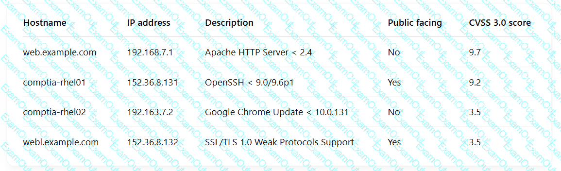 Which of the following should the engineer prioritize for remediation?
