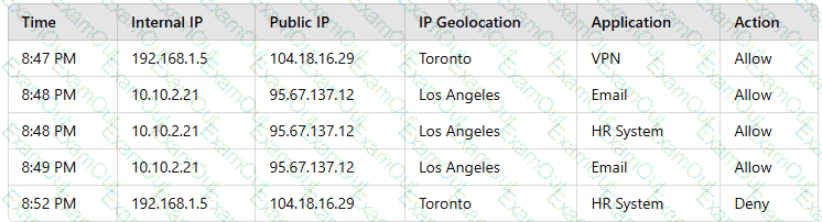 A user reports application access issues to the help desk. The help desk reviews the logs for the user: