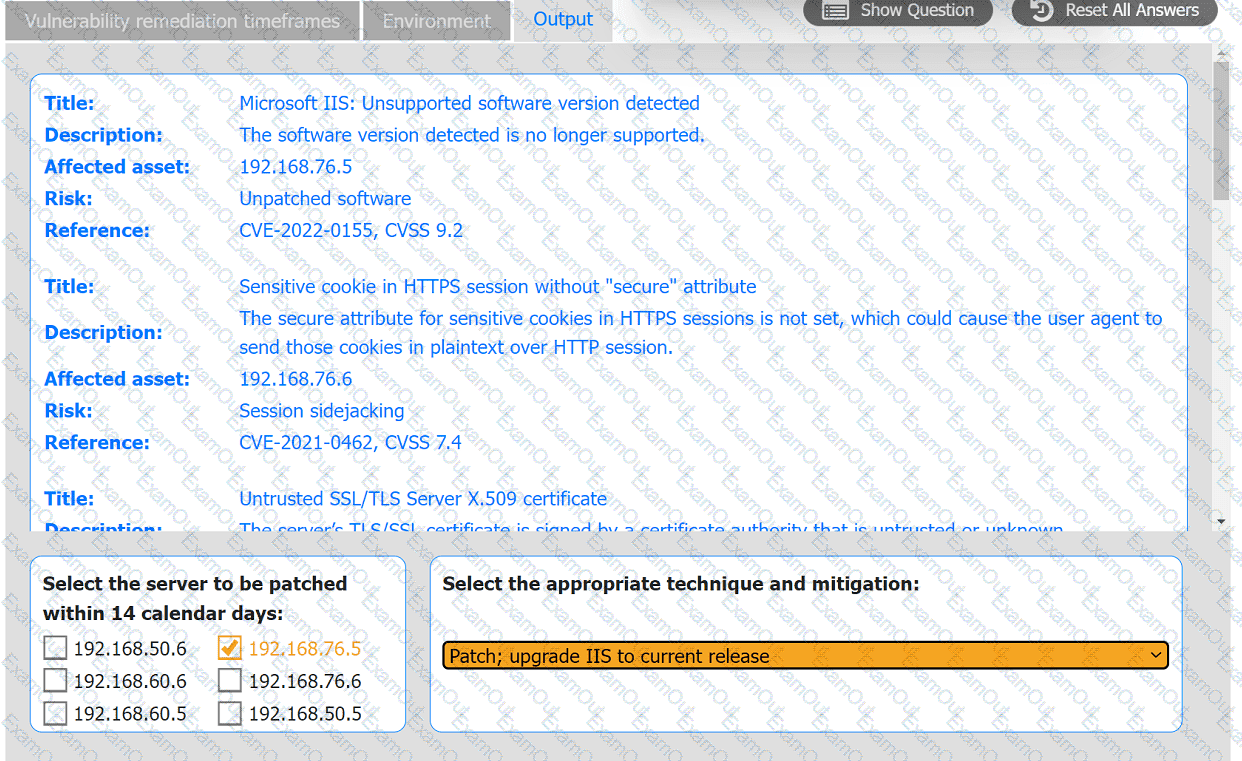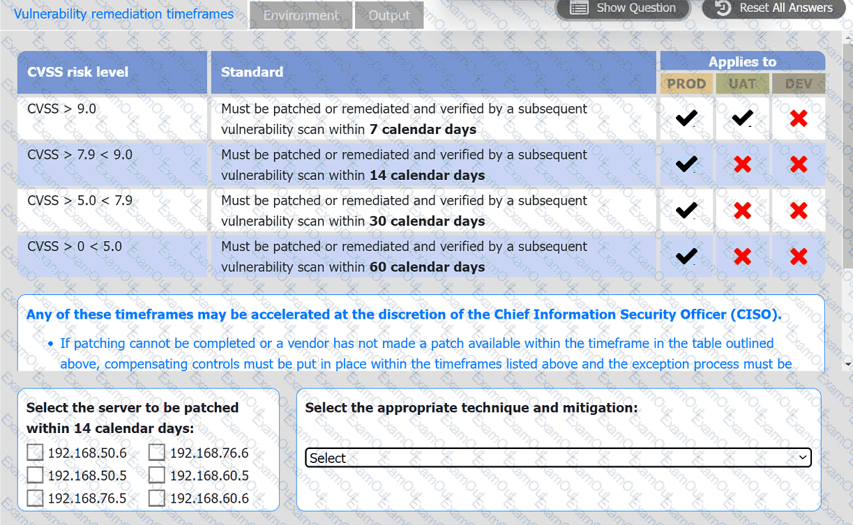 Based on the organization's environment architecture and remediation standards,