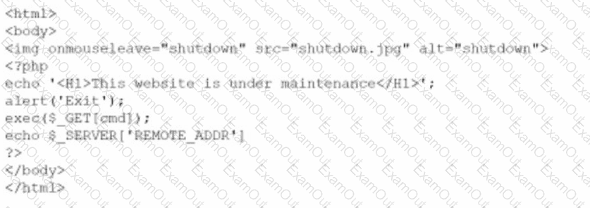 A company brings in a consultant to make improvements to its website. After the consultant leaves. a web developer notices unusual activity on the website and submits a suspicious file containing the following code to the security team: