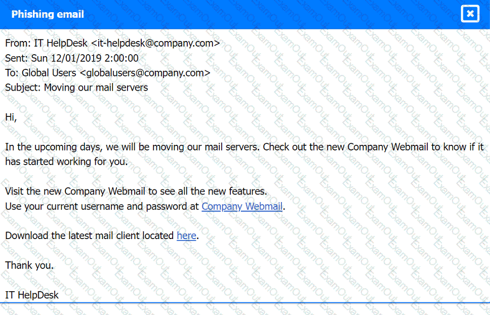 a user clicked on a link embedded in a phishing email that was sent to the entire company. The link resulted in a malware download, which was subsequently installed and run.