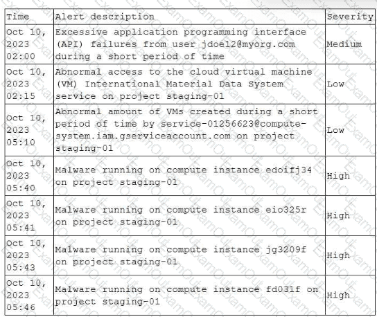 A security operations center receives the following alerts related to an organization's cloud tenant: