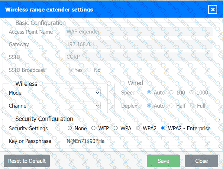To configure the wireless range extender for security, follow these steps: