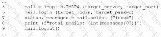 A penetration tester creates the following Python script that can be used to enumerate information about email accounts on a target mail server: