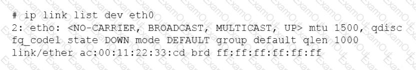 A systems administrator is troubleshooting connectivity issues and trying to find out why a Linux server is not able to reach other servers on the same subnet it is connected to. When listing link parameters, the following is presented: