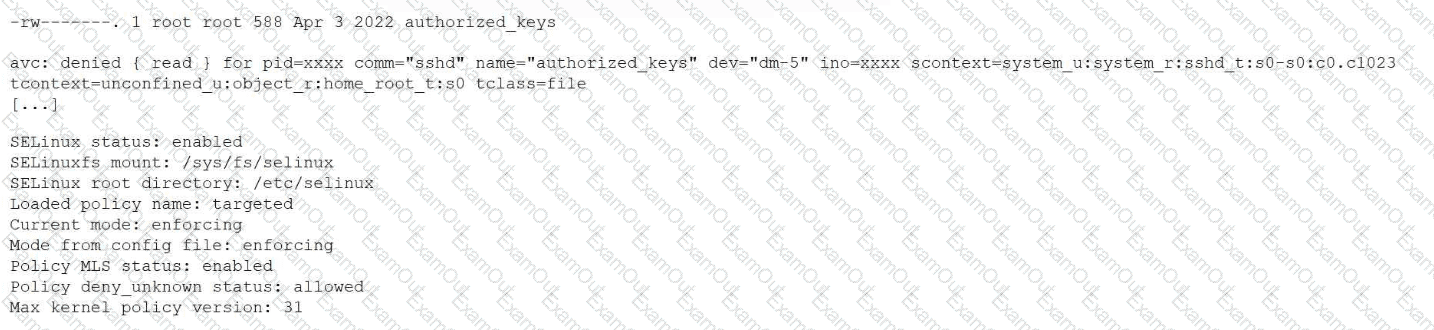 A Linux administrator just finished setting up passwordless SSH authentication between two nodes. However, upon test validation, the remote host prompts for a password. Given the following logs: