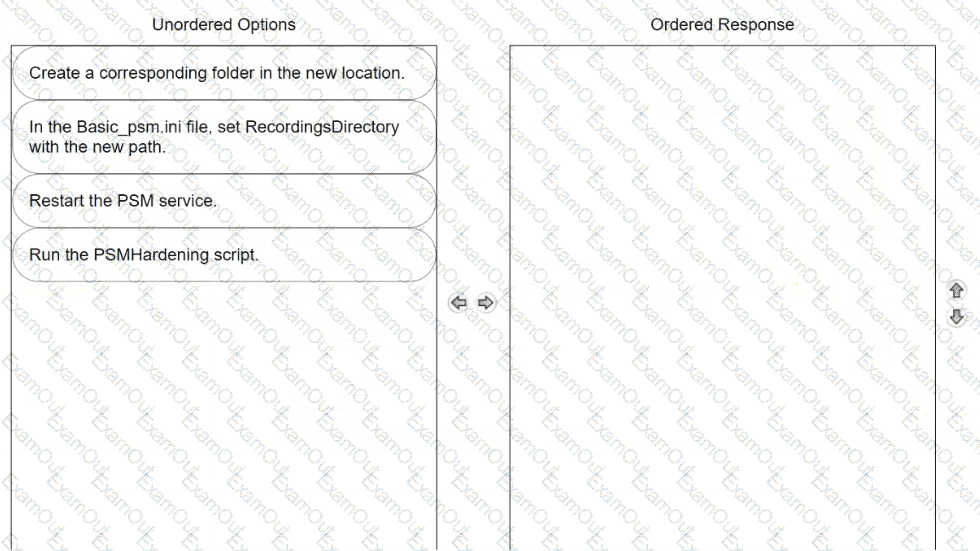 You want to change the default PSM recordings folder path on the Privilege Cloud Connector Arrange the steps to accomplish this in the correct sequence.