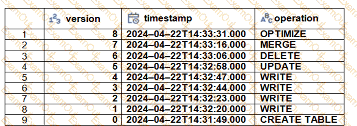 The Delta transaction log for the ‘students’ tables is shown using the ‘DESCRIBE HISTORY students’ command. A Data Engineer needs to query the table as it existed before the UPDATE operation listed in the log.