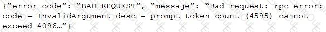 After changing the response generating LLM in a RAG pipeline from GPT-4 to a model with a shorter context length that the company self-hosts, the Generative AI Engineer is getting the following error: