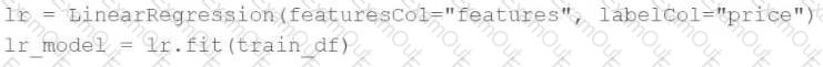 A machine learning engineer would like to develop a linear regression model with Spark ML to predict the price of a hotel room. They are using the Spark DataFrametrain_dfto train the model.