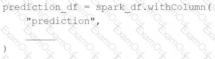They have written the following incomplete code block to use predict to score each record of Spark DataFramespark_df: