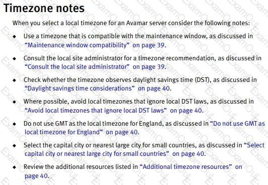 Which time zone is used on Dell Avamar nodes?