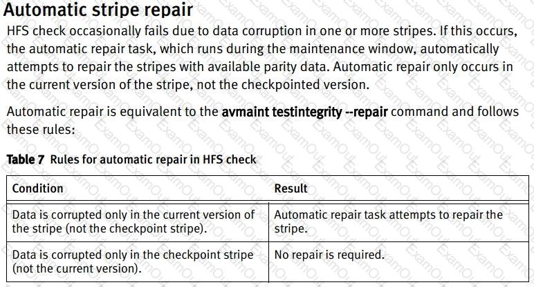 What is the behavior of an Dell Avamar HFS check when it detects an error in a stripe?