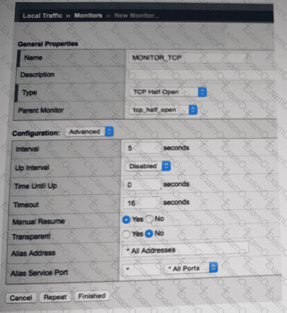 A BIG-IP Administrator configured a virtual server with a pool of 3 members and selected the Round Robin load balancing method to evenly distribute traffic across the pool members. During initial testing, the virtual server failed to respond to http requests.