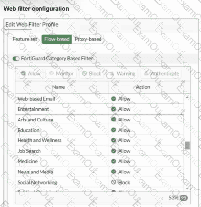 An administrator configured the Web Filter Profile to block access to all social networking sites except Facebook. However, when users try to access Facebook.com, they are redirected to a FortiGuard web filtering block page.