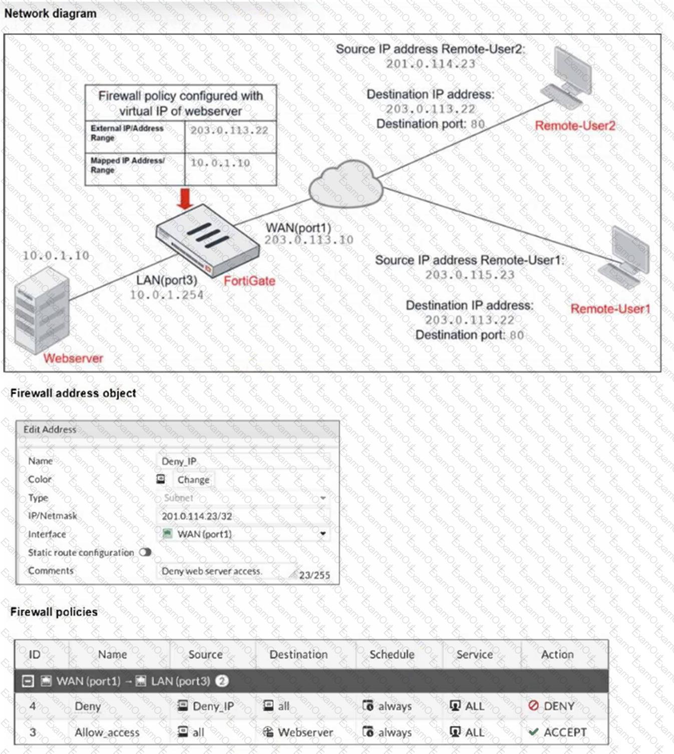 The policy should work such that Remote-User1 must be able to access the Webserver while preventing Remote-User2 from accessing the Webserver.