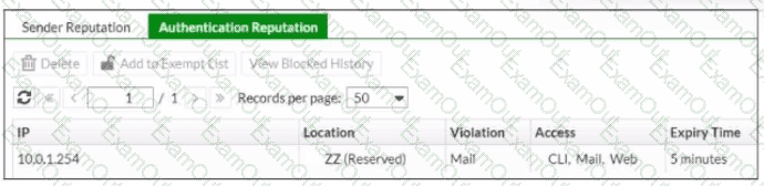 Refer to the exhibit, which shows the Authentication Reputation list on a FortiMail device running in gateway mode.