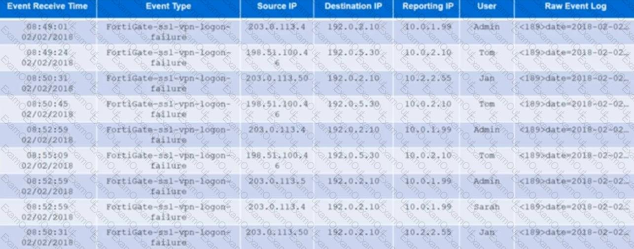 An administrator runs an analytic search for all FortiGate SSL VPN logon failures. The results are grouped by source IP, reporting IP, and user. The administrator wants to restrict the results to only those rows where the COUNT >=3.