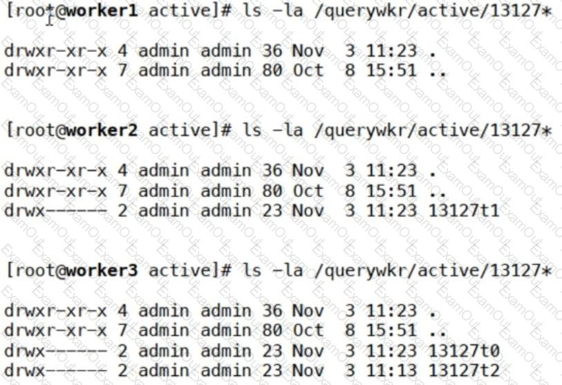 The output showstwo tasks (13127t0and13127t1), indicating that Worker3 is processingtwo tasksfor query ID 13127.