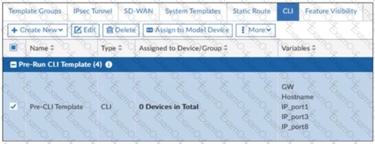 A pre-run CLI template that is used in zero-touch provisioning (ZTP) and low-touch provisioning (LTP) with FortiManager is shown.