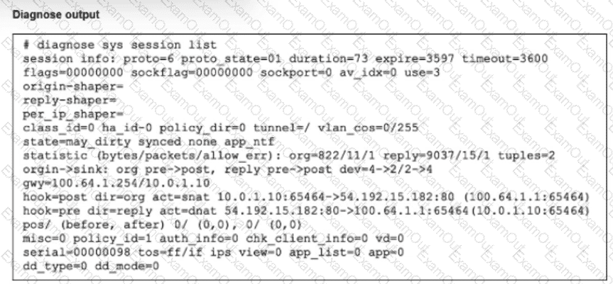 Refer to the exhibit, which shows the port1 interface configuration on FortiGate and partial session information for ICMP traffic.