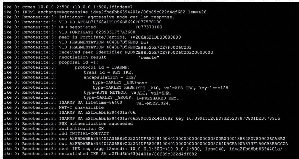 Refer to the exhibit, which contains partial output from an IKE real-time debug.