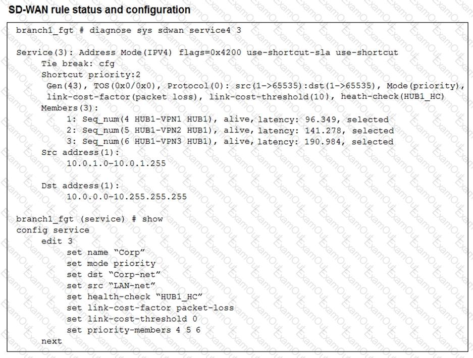 Based on the exhibit, which change in the measured packet loss will make HUB1-VPN3 the new preferred member?