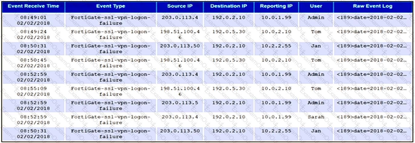 An administrator runs an analytic search for all FortiGate SSL VPN logon failures. The results are grouped by source IP, reporting IP, and user. The administrator wants to restrict the results to only those rows where the COUNT >= 3.