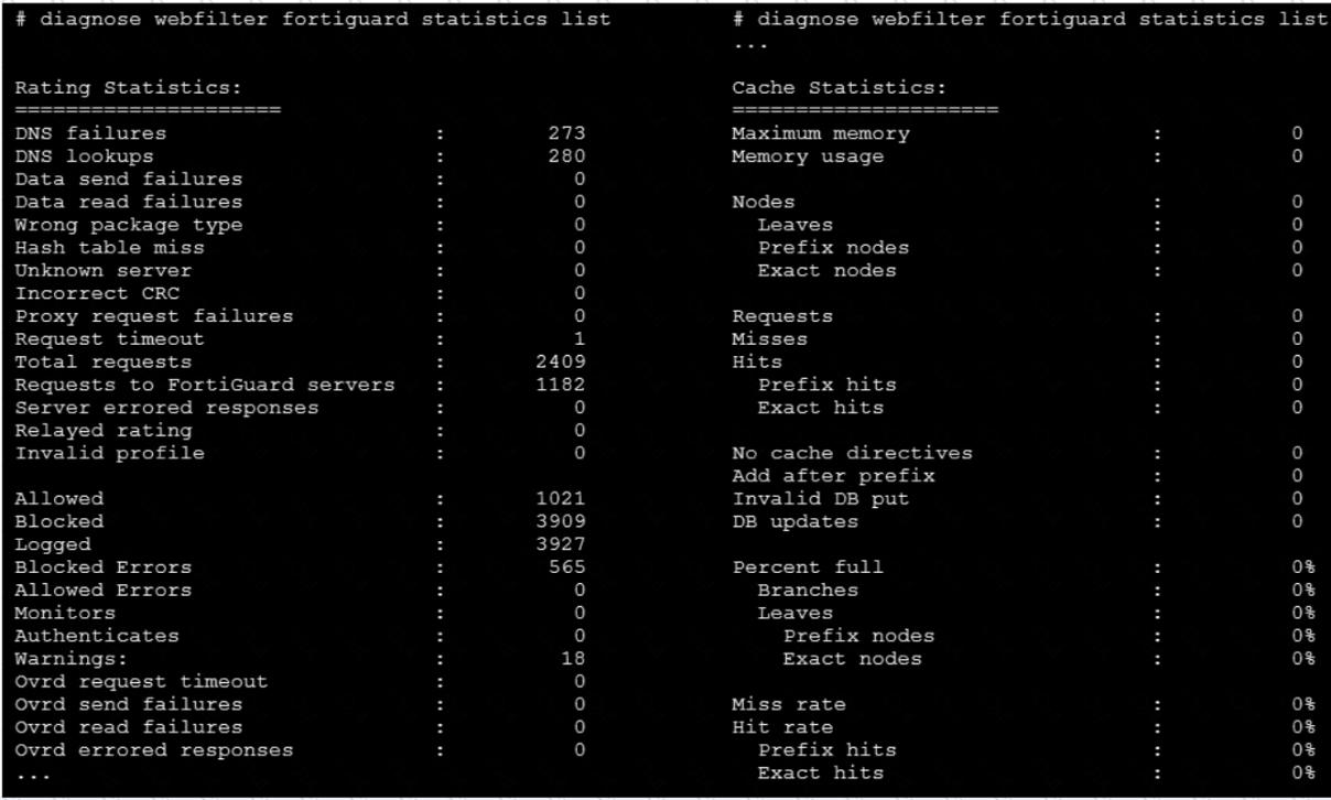 Refer to the exhibit, which shows the output of a web filtering diagnose command.
