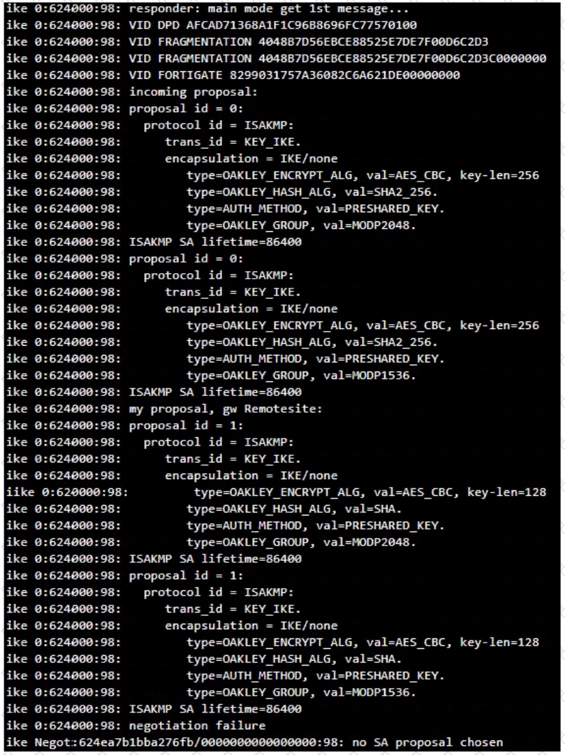 View the exhibit, which contains the partial output of an IKE real-time debug, and then answer the question below.