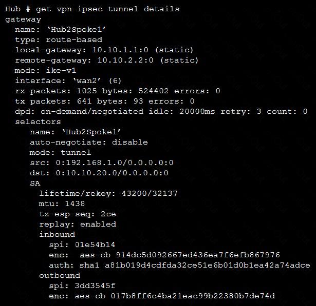 Refer to the exhibit, which contains the partial output of the get vpn ipsec tunnel details command.