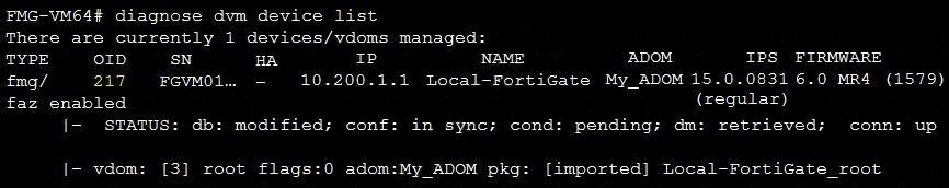Refer to the exhibit, which contains the debug output of diagnose dvm device list.