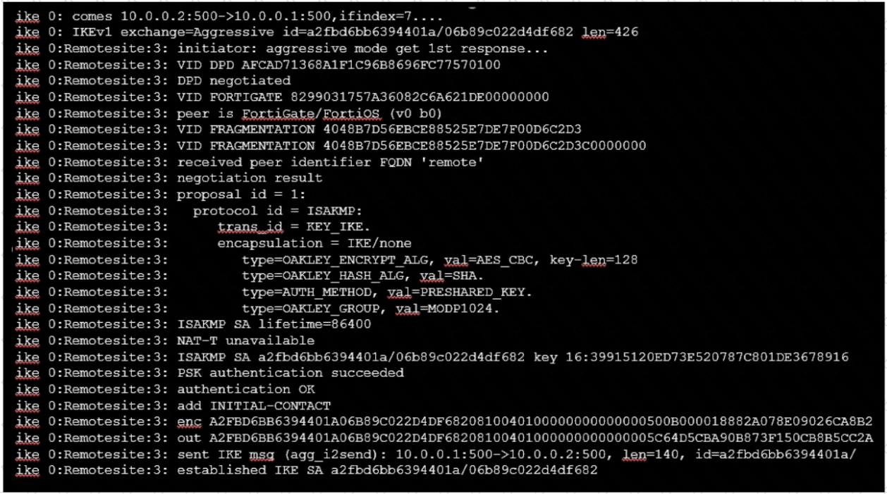 Refer to the exhibit, which contains partial output from an IKE real-time debug.