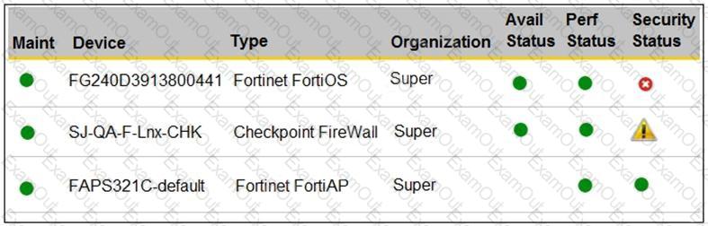 How do you view information presented in the exhibit and what does the FortiGate device security status tell you?