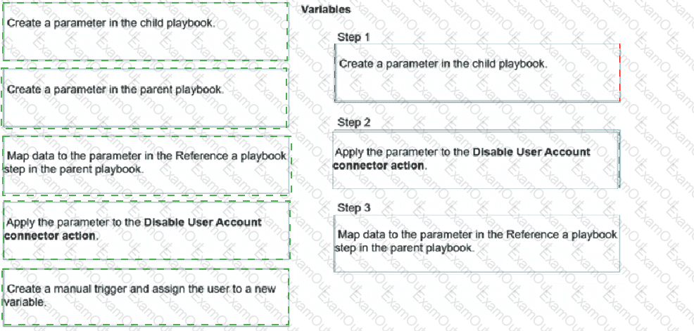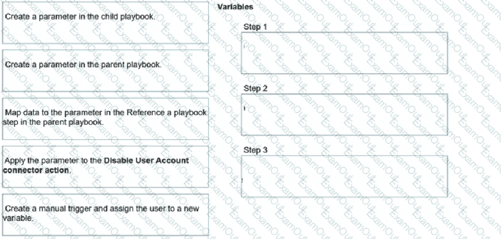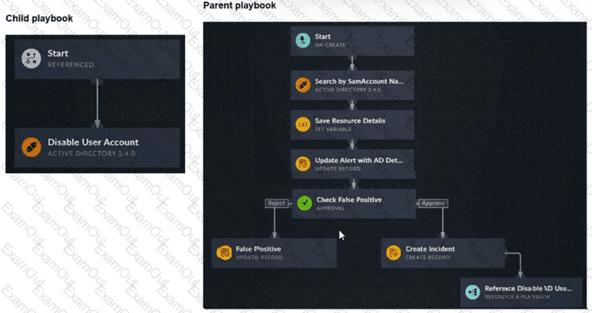 You have a playbook that, depending on whether an analyst deems the alert to be a true positive, could reference a child playbook. You need to pass variables from the parent playbook to the child playbook.