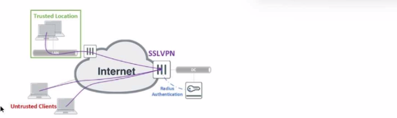 The exhibit shows the topology a customer wants to implement using a flexible authentication scheme. Users connecting from trusted remote locations are authenticated using only their username/password when connecting to the SSLVPN FortiGate in the data center.