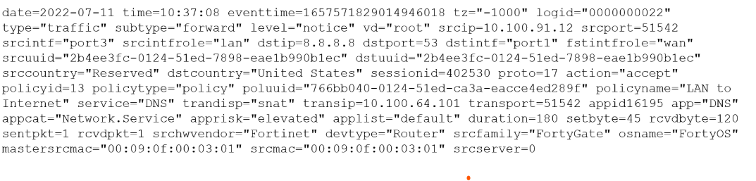 You want to review this log on FortiAnalyzer GUI, what time should you use as a filter?