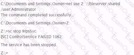 A penetration tester wishes to stop the Windows Firewall process on a remote host running Windows Vista She issues the following commands: