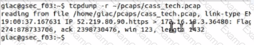 Open the MATE terminal and use the tcpdump program to read - /pcaps /cass tech.pcap.