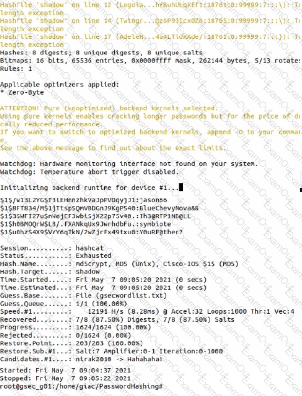 • The shadow file (shadow) and Hashcat wordlist (gsecwordlist.txt) are located in the directory /home /giac /PasswordHashing/