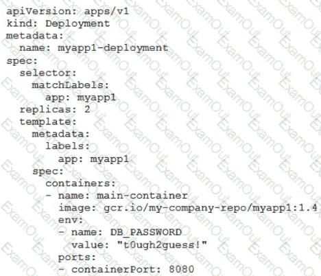 You need to refactor this configuration so that the database password is not stored in plain text. You want to follow Google-recommended practices. What should you do?