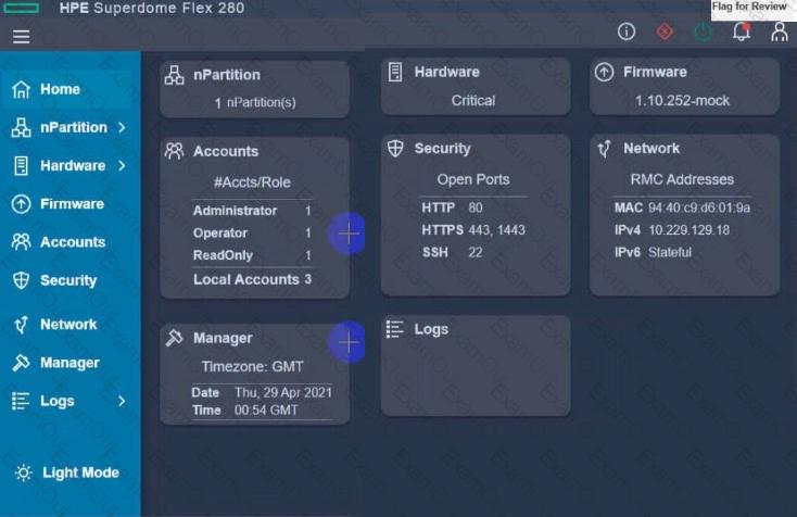 Click the appropriate section in the HPE Superdome Flex 280 management interface that will allow you to complete this task.