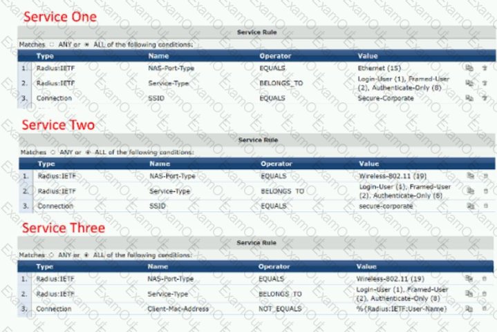 A user connects to an Aruba Access Point wireless SSID named 'Secure-Corporate" and performs an 802 1X authentication with ClearPass as the authentication server