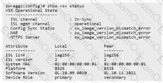 You ' ve rebooted s-agg2 in a VSX configuration in an attempt to live-upgrade the cluster, and then you see this condition: