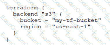 You decide to move a Terraform state file to Amazon S3 from another location. You write the code below into a file called backend.tf.