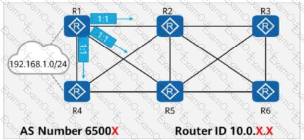 R1 adds a community attribute (1:1) to the route before advertising it to its peers.