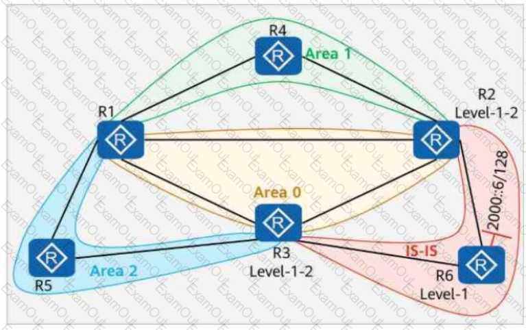 On the network shown in the figure, IS-IS IPv6 runs on R2, R6, and R3, and the IPv6 address of Loopback0 on R6 is 2000::6/128. OSPFv3 runs on other links. Area 1 is a stub area, and Area 2 is an NSSA. IS-IS routes are imported to OSPFv3 on R2 and R3. Which of the following statements are false?